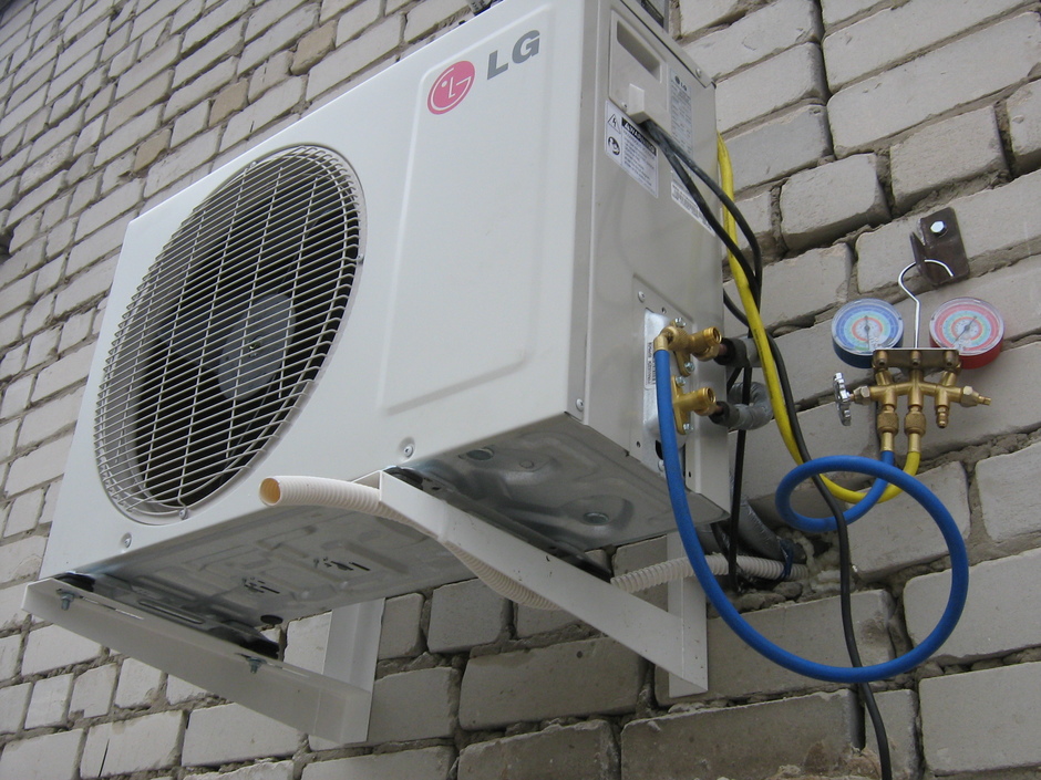 Газообразный фреон поступает в конденсатор, где сжимается, охлаждается уличным воздухом, переходит в жидкий вид и цикл снова повторяется.Для нагрева воздуха применяется обратная схема.